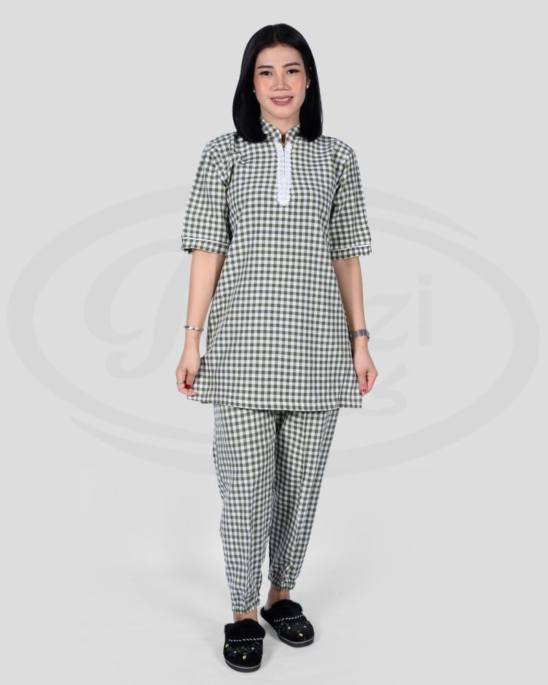 - البنطلون: يتميز بخصر مطاطي مرن، مما يوفر ملاءمة مريحة وسهولة في الارتداء. تصميمه الواسع يضمن حرية الحركة أثناء القيام بالأعمال المنزلية.