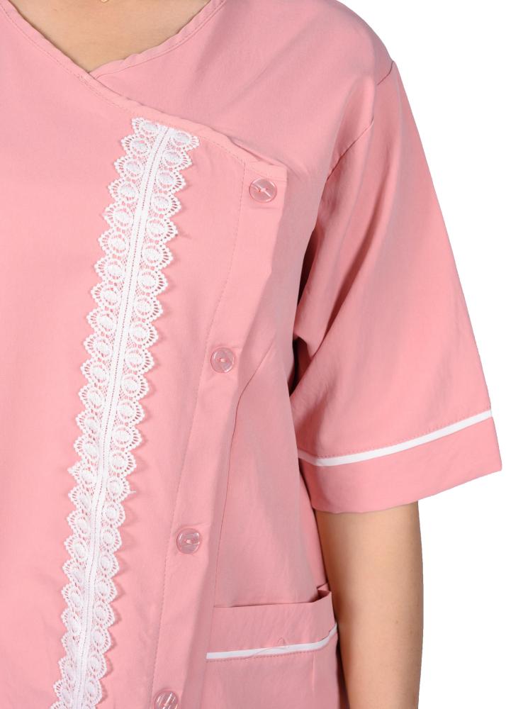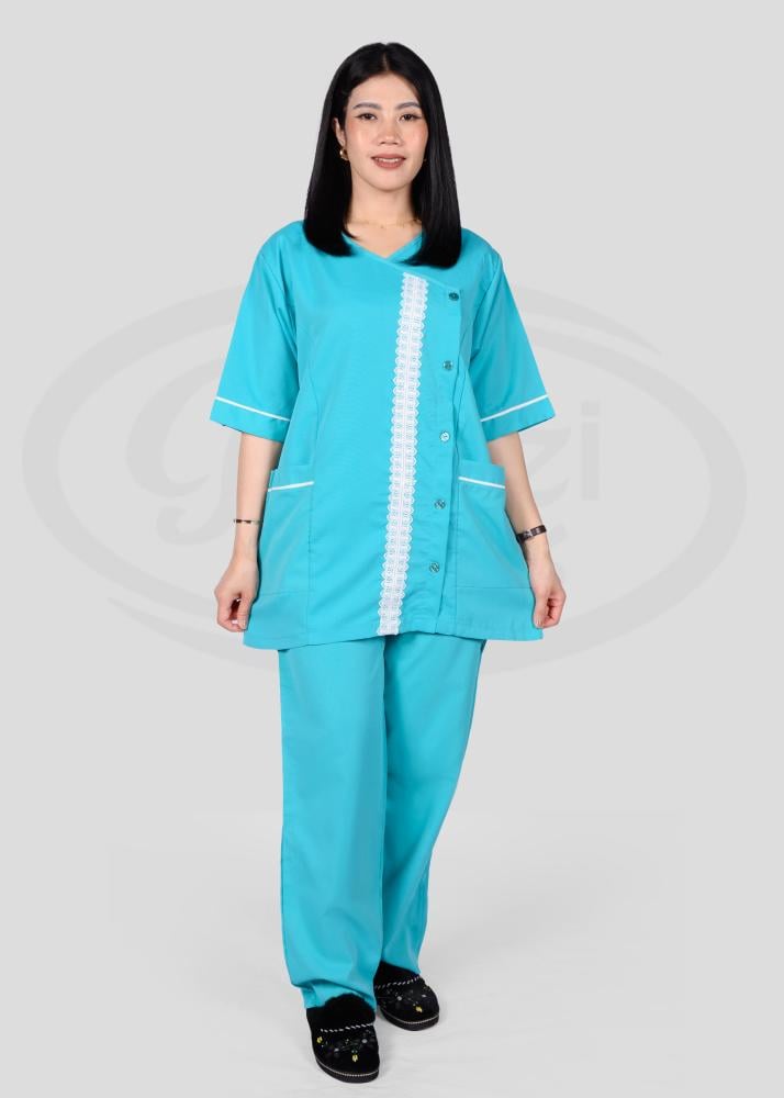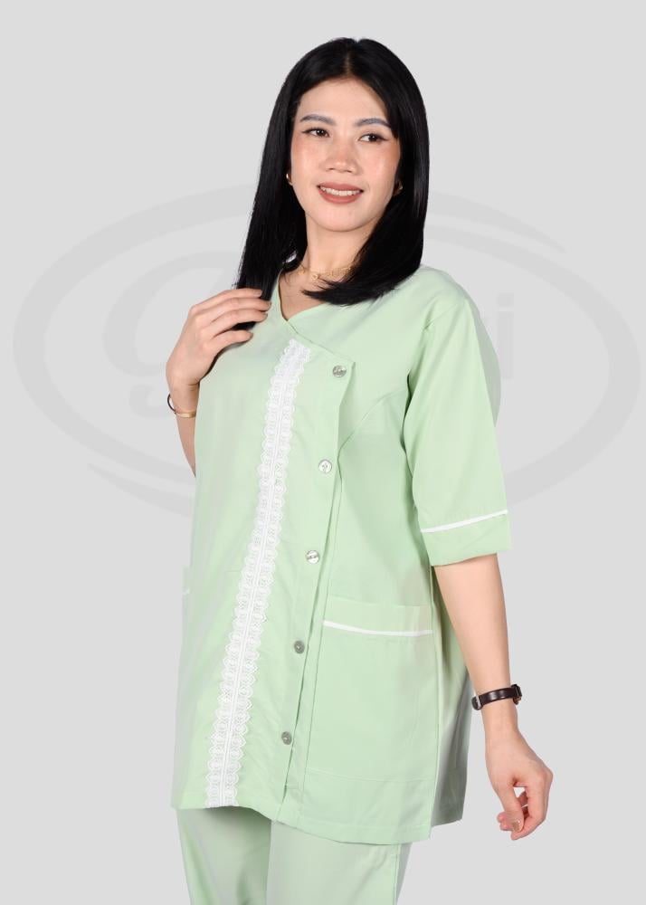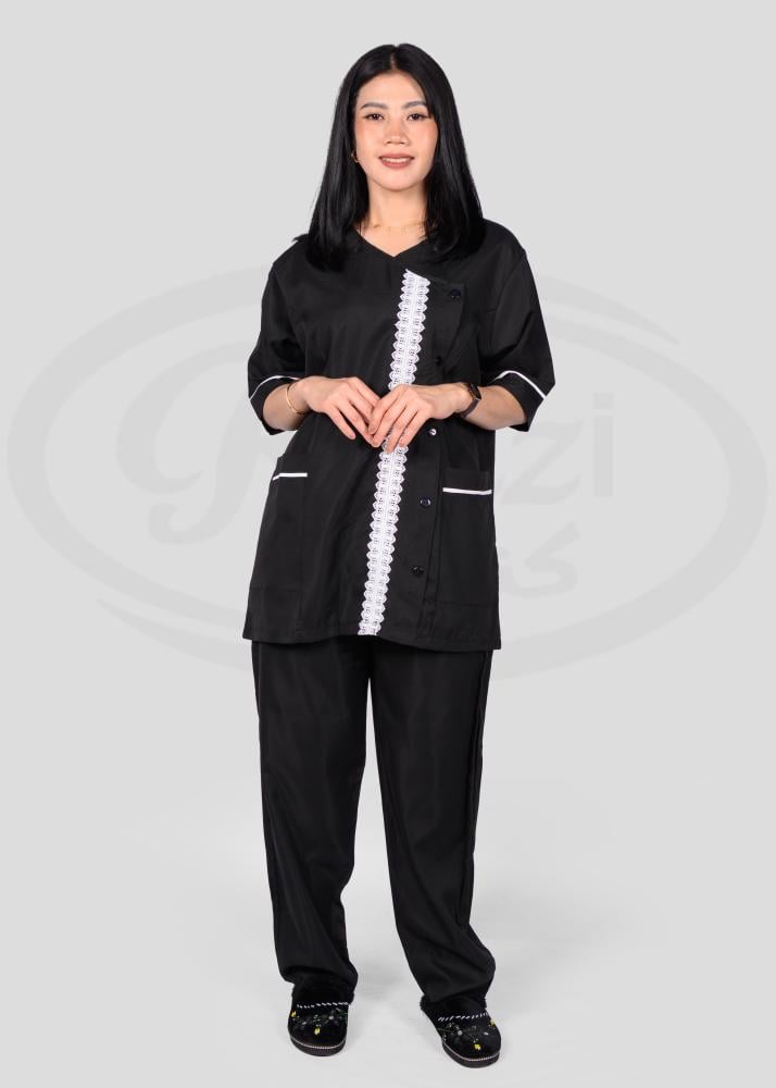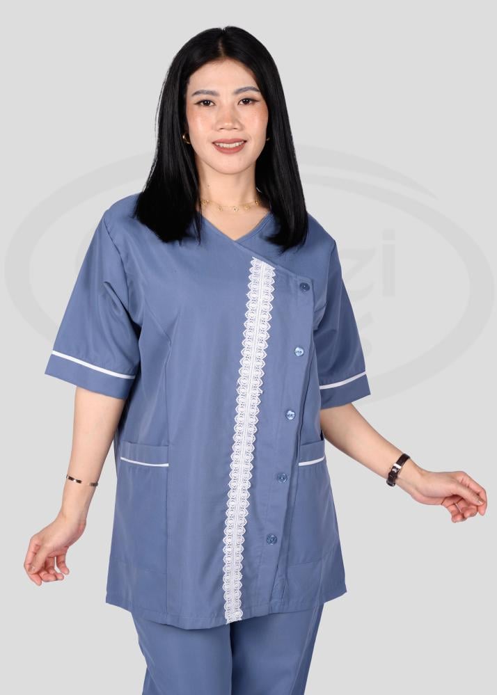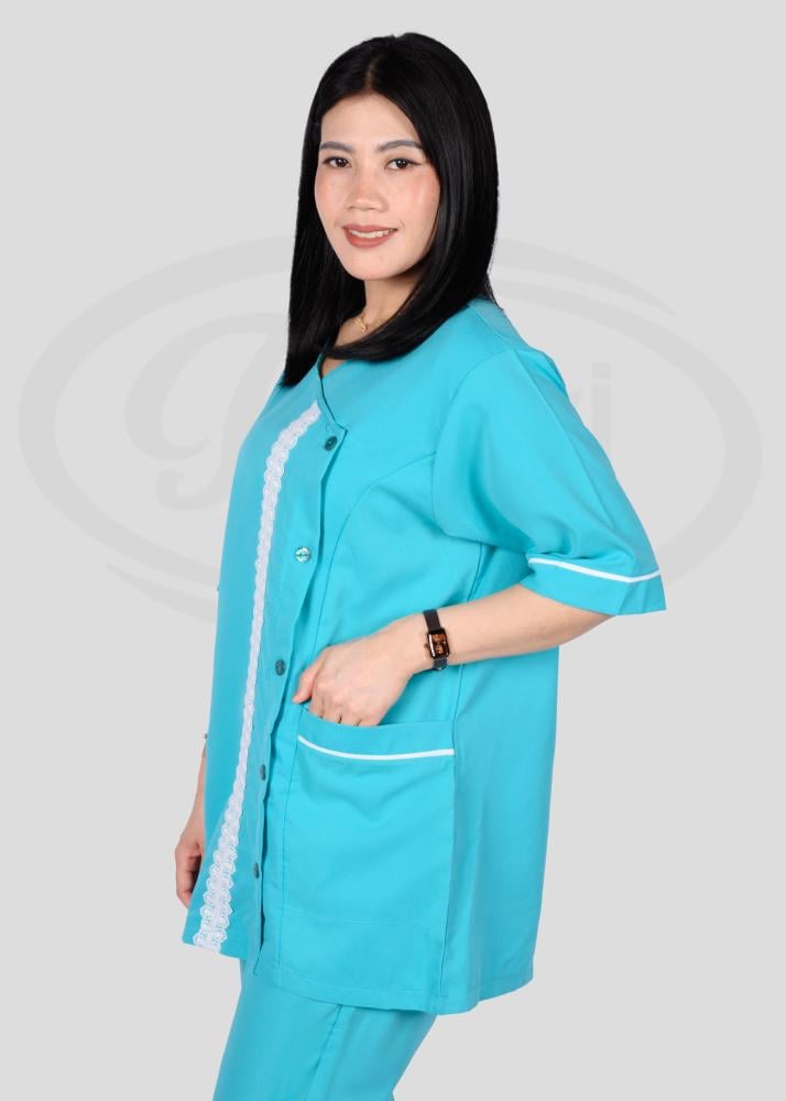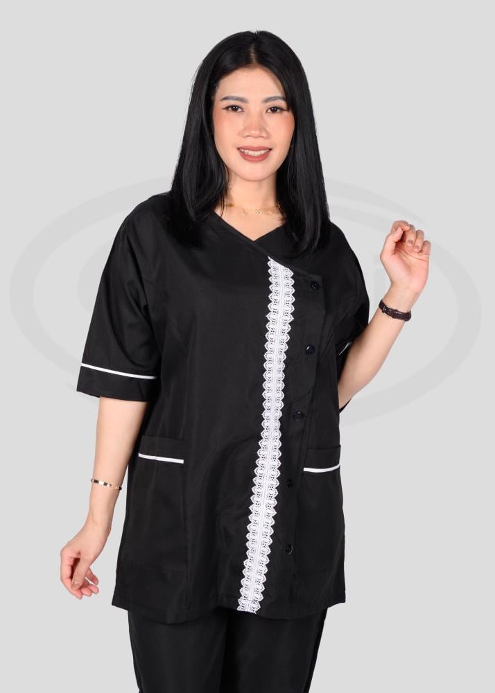 هذا الزي العملي يتمتع بتصميم عصري يجمع بين الأناقة والراحة، حيث يتميز بقصة انسيابية تمنح مظهراً مرتّباً ومهنيّاً في آن واحد. تمت مراعاة أدق التفاصيل في تصميمه من حيث الخطوط والتفاصيل الجانبية التي تضيف لمسة جمالية راقية وتبرز أناقة المظهر العام.