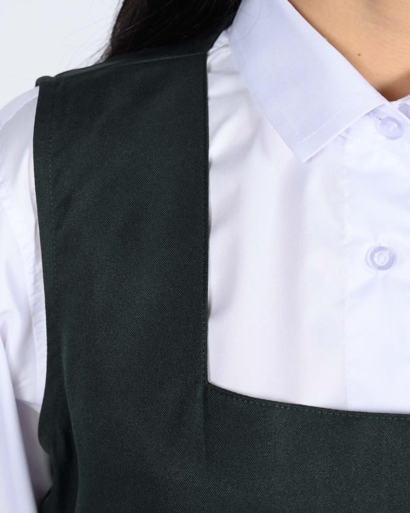 طقم زي مدرسي بناتي رسمي باللون الزيتي مع قميص أبيض طويل الأكمام