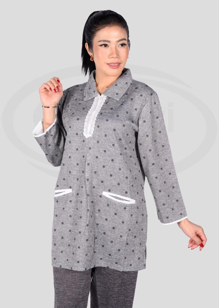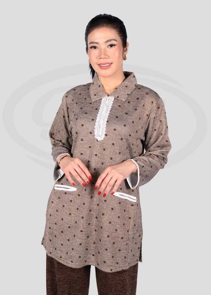 اختاري الدفء والأناقة مع هذا الزي الشتوي المصمم خصيصًا للعاملات المنزلية. يتميز بخامة سميكة وناعمة تمنح الراحة والدفء في أيام الشتاء الباردة، مع تصميم عملي يناسب بيئة العمل اليومي. الجزء العلوي يأتي بنقشة منقطة كلاسيكية مع ياقة مريحة وتفاصيل دانتيل أنيقة على الصدر، بالإضافة إلى جيوب أمامية بلمسة بيضاء تضيف لمسة عملية وجمالية. أما البنطال الواسع، فهو مصنوع من قماش دافئ يضمن حرية الحركة والراحة طوال اليوم ، كما أن تفاصيل الخياطة الدقيقة تمنحه مظهرًا مرتبًا يعكس العناية بالجودة والتصميم.