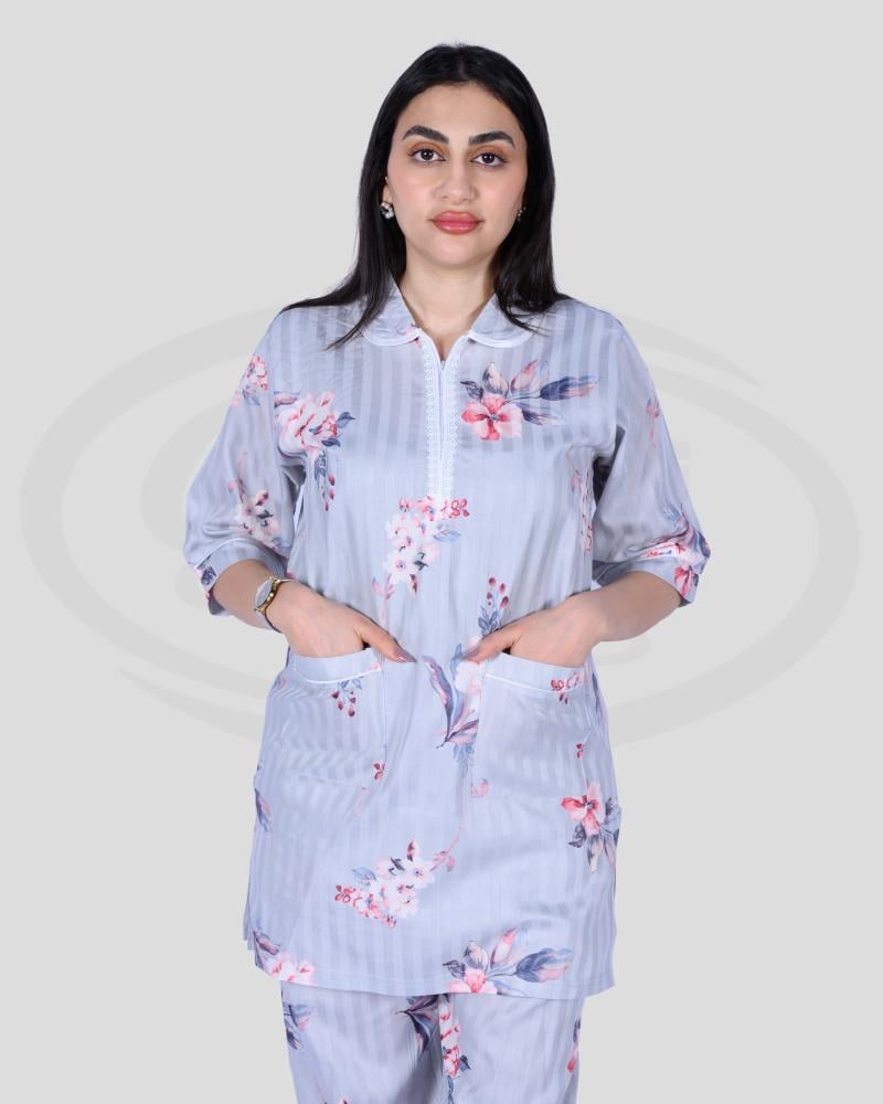 قميص طويل بأكماك متوسطة الطولوبنطلون بخصر مطاطي ،