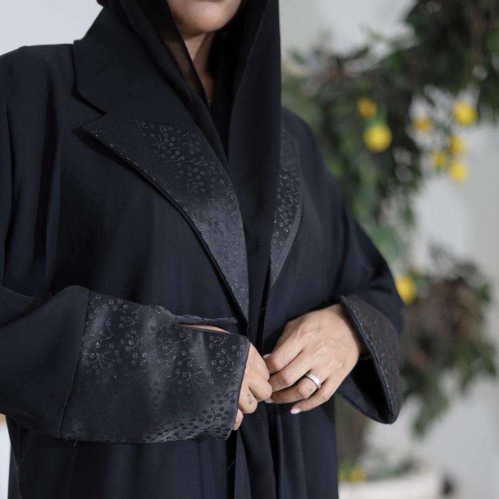 التطريز: تطريز أسود على اجزاء من العباية