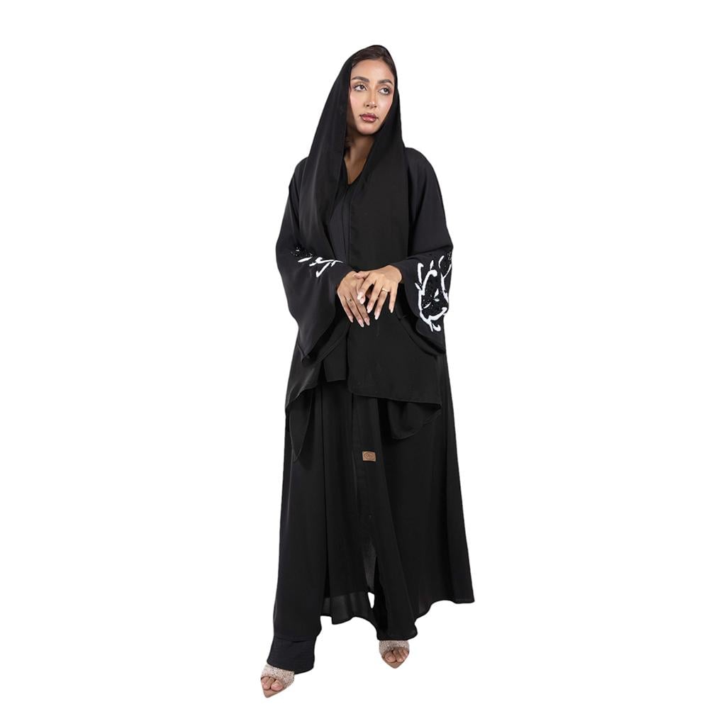 عباية سوداء انترنت قصة كلوش انيقة بكم واسع مطرز بالابيض والترتر الاسود مع طرحه F