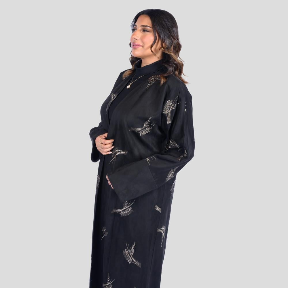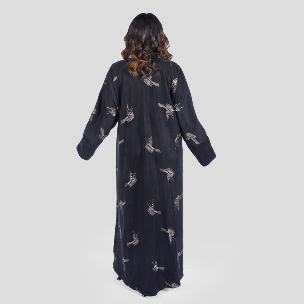 عباية شتوية لف شمواه سوداء مطرزة بالذهبي F