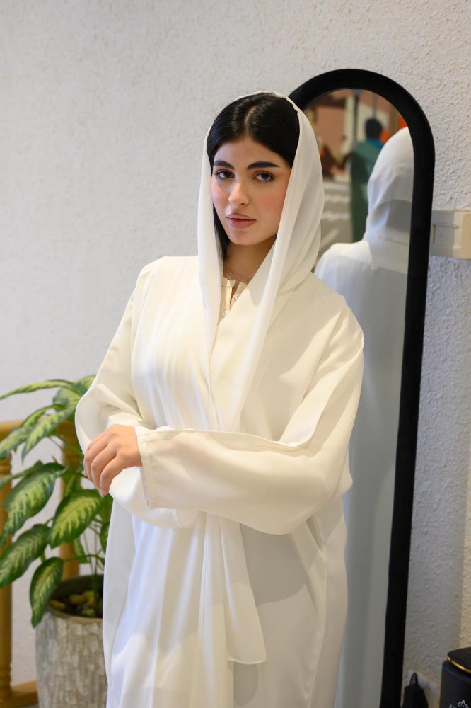 عباية نسائية بتصميم مفتوح بالكامل بدون أزرار أو سحاب، تتميز بقصة واسعة تمنح الراحة والانسيابية. ياقة وسيعة بينما تنسدل الأكمام الطويلة بشكل طبيعي ومريح. الخياطة النظيفة والتفاصيل الدقيقة تجعلها قطعة عملية ومناسبة لتنسيقات متعددة.