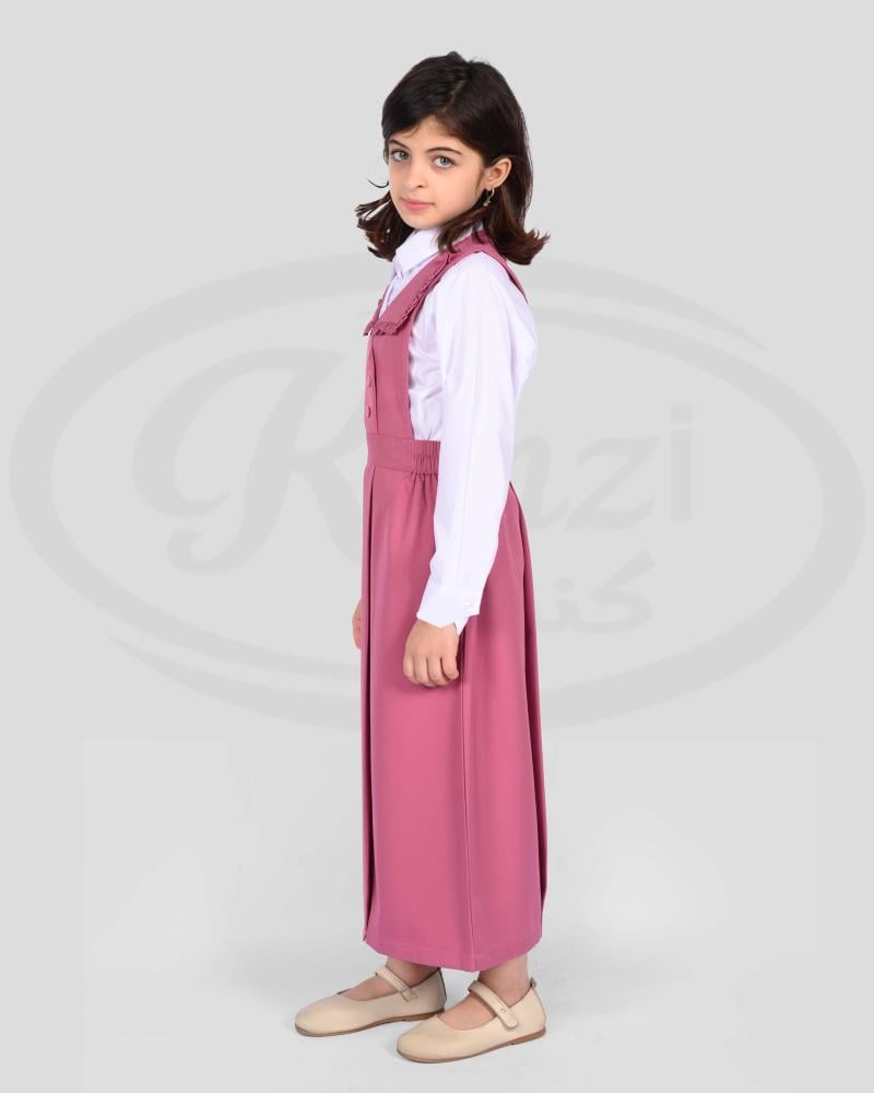 طقم مريول مدرسي مع قميص بناتي وردي مميز مع قميص أبيض