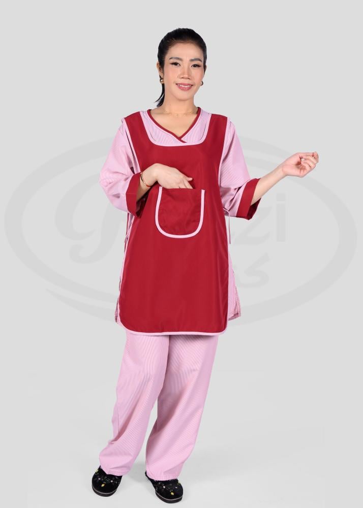 • القطعة الإضافية المريلة: الوظيفة: تحمي البلوزة من الاتساخ أثناء أداء المهام اليومية.