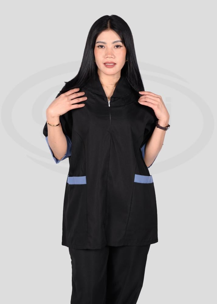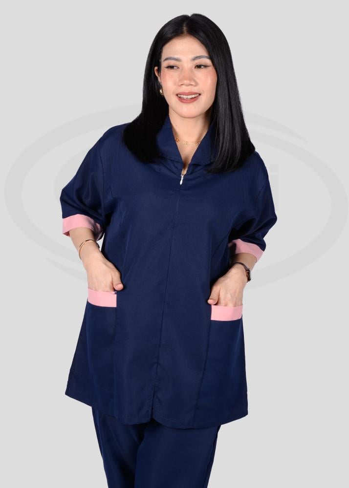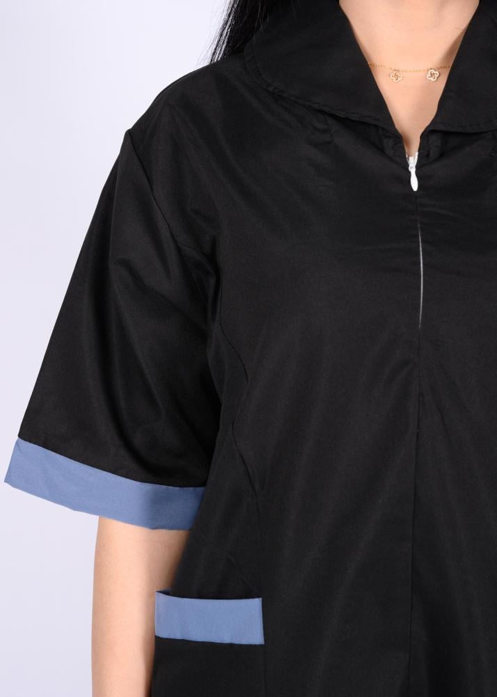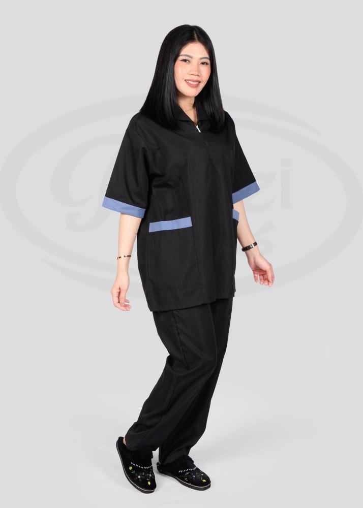 هذا الزي العملي يتمتع بتصميم عصري يجمع بين الأناقة والراحة، حيث يتميز بقصة انسيابية تمنح مظهراً مرتّباً ومهنيّاً في آن واحد. تمت مراعاة أدق التفاصيل في تصميمه من حيث الخطوط والتفاصيل الجانبية التي تضيف لمسة جمالية راقية وتبرز أناقة المظهر العام.